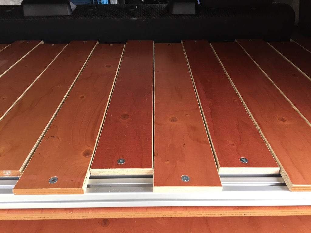 Wij hebben geen probleem met het uitschuiven van de beddelen. Tussen de latjes hebben we 1mm ruimte gelaten.