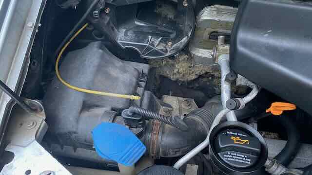 Naast het luchtfilter, onder het interieurfilter gaat een harde gele leiding circa 6mm doorsnede door het kopschot. Het uiteinden komt volgens mij wel ergens vanaf maar voordat ik alles ga uitbouwen de vraag