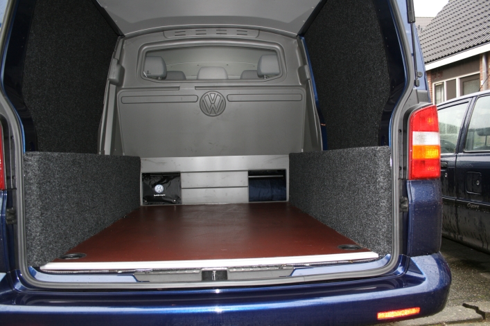 Hierbij enkele foto's van de laadruimte van m'n T5 nadat ik deze naar eigen wensen heb aangepast.