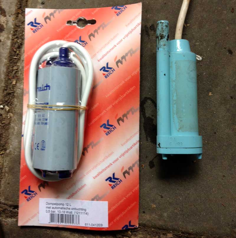 Daarna was het helemaal over. Ik wist in ieder geval waar het probleem zat. Nieuwe pomp gehaald bij een lokale caravanzaak. Gekozen voor een Reich.