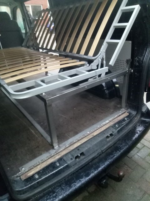 Het bed zit aan de voorzijde en achterzijde vast aan de zijkant, moet het voor de RDW door de vloer vast gezet worden of mag het aan de 12mm dikke houten vloerplaat vast. Het worden geen gekeurde zitplaatsen.