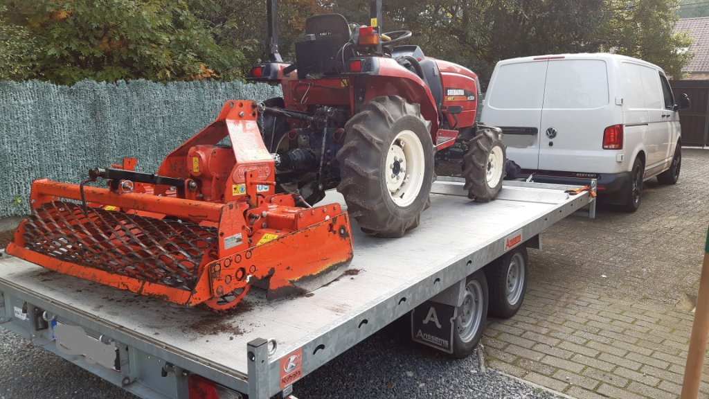 Met de Iseki traktor op weg Met het kraantje op weg Met de Shibaura traktor op weg Vooruit een zware aanhangwagen trekken : meer dan voldoende vermogen , de DSG trekt het heel goed ; maar bij een aanhangwagen achteruit duwen , dan lijkt het alsof de DSG er wat moeite mee heeft .