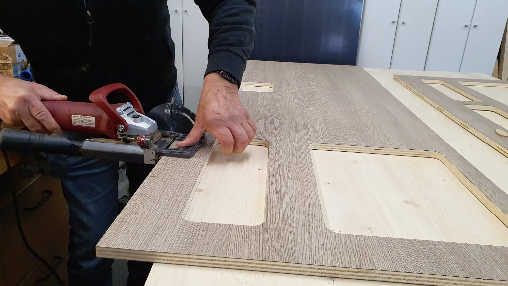 Ook heeft Henk, met zijn professionele gereedschap even lamello-sleuven erin gefreesd.