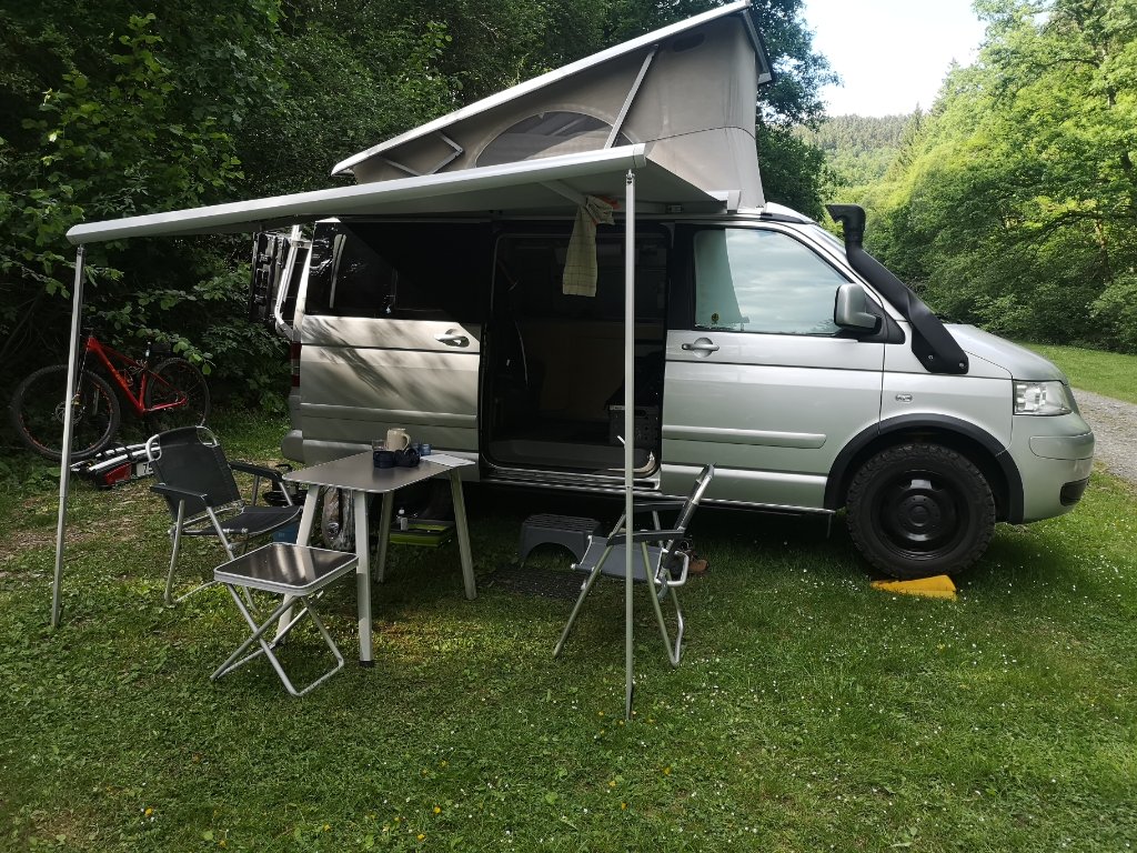 Leuk dat jullie even langs kwamen busje kijken Marcel en Petra. Het is hier ook inmiddels een busjes treffen op de camping, van T2 tot T6, inmiddels al een stuk of 15 en nog wat andere merken.