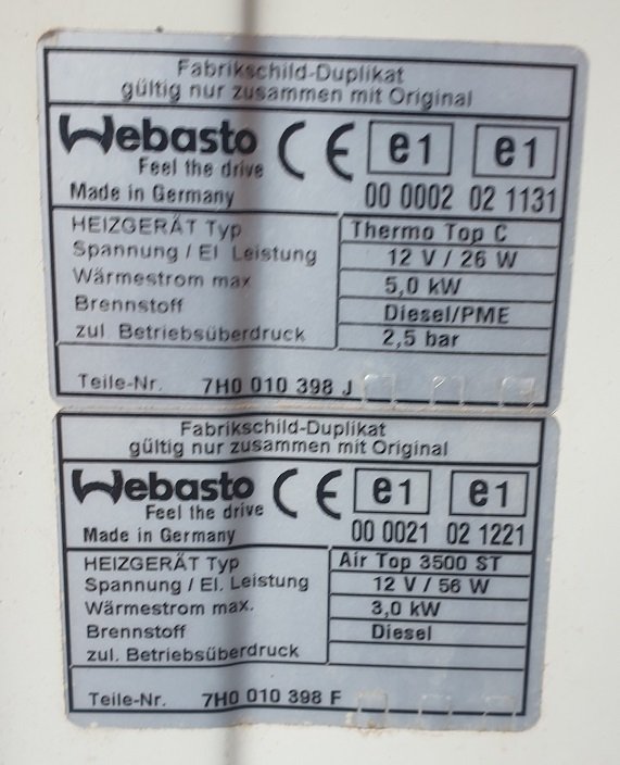 Zag ook dat ik de WWZH (Thermo top C) en de WLZH (Air top 3500ST) heb. Vanmorgen de bus eens gestart en hij begon te brommen onder de bestuurders zijde. De stickers voor deze kachels aan de binnenzijde deur zitten toevallig op beide deuren ;-)