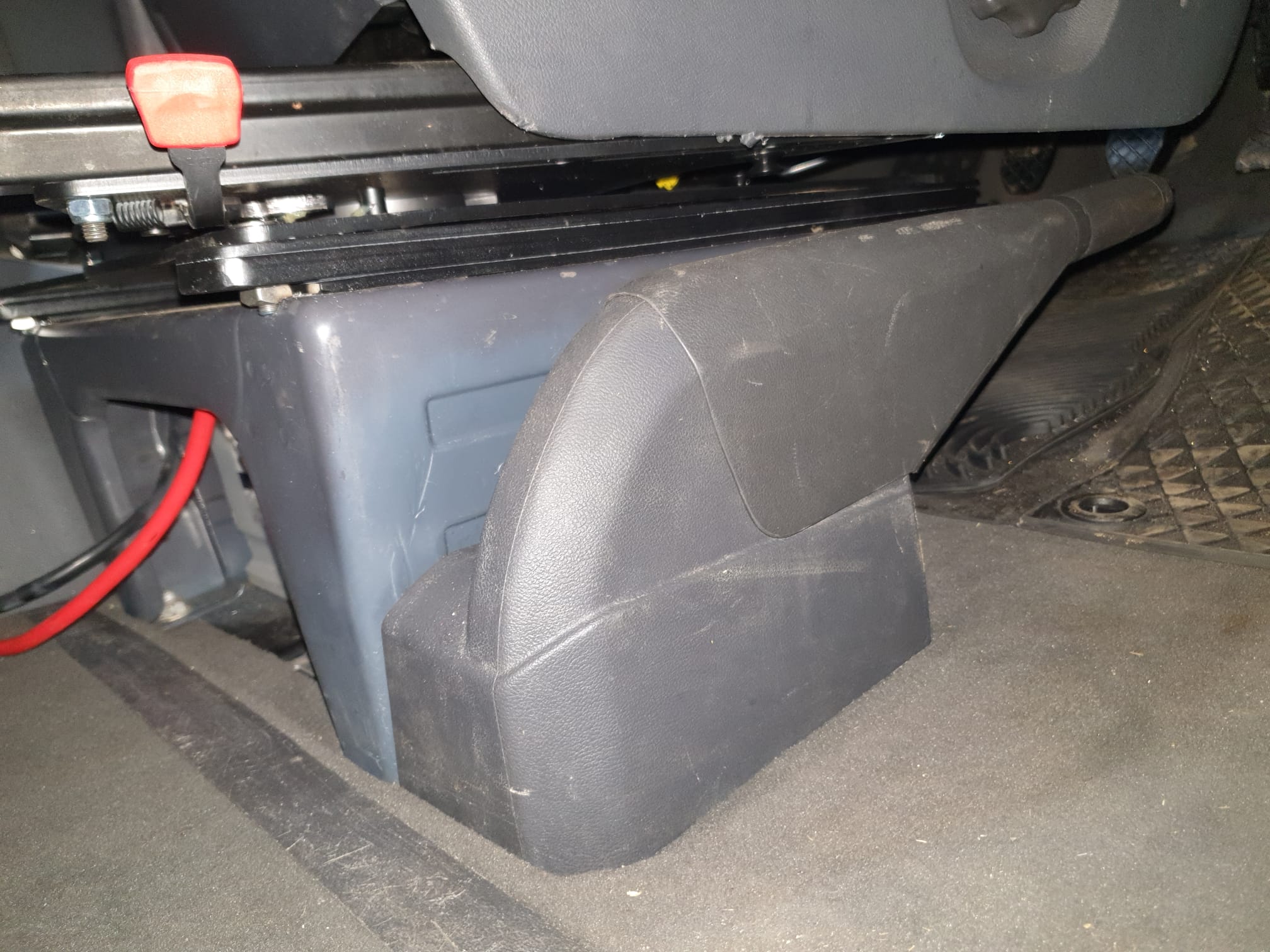 Tussendoor de stoelconsoles van voren verlast met twee accubak platen uit een t6. De originele onder bestuurderstoel zit vrij hoog (plaatst de accu horizontaal) waardoor de polen erg dicht onder de stoel zitten. Ik heb de T6 plaat in de breedte aangepast op de stoelconsole en tussen de bodem gelast. Console staat op verhoogde bouten en de gestanste rand moet precies goed zitten boven de ribbels in de vloerplaat. Lager gaat niet. Kan nu de 2x varta 95Ah of 100Ah AGM goed plaatsen. Ga ook even bekijken hoe dat laadcircuit van de tweede (en 3e) accu nu zit want ik vermoed een simpel relais wat ik dan probeer te vervangen door een cirix.