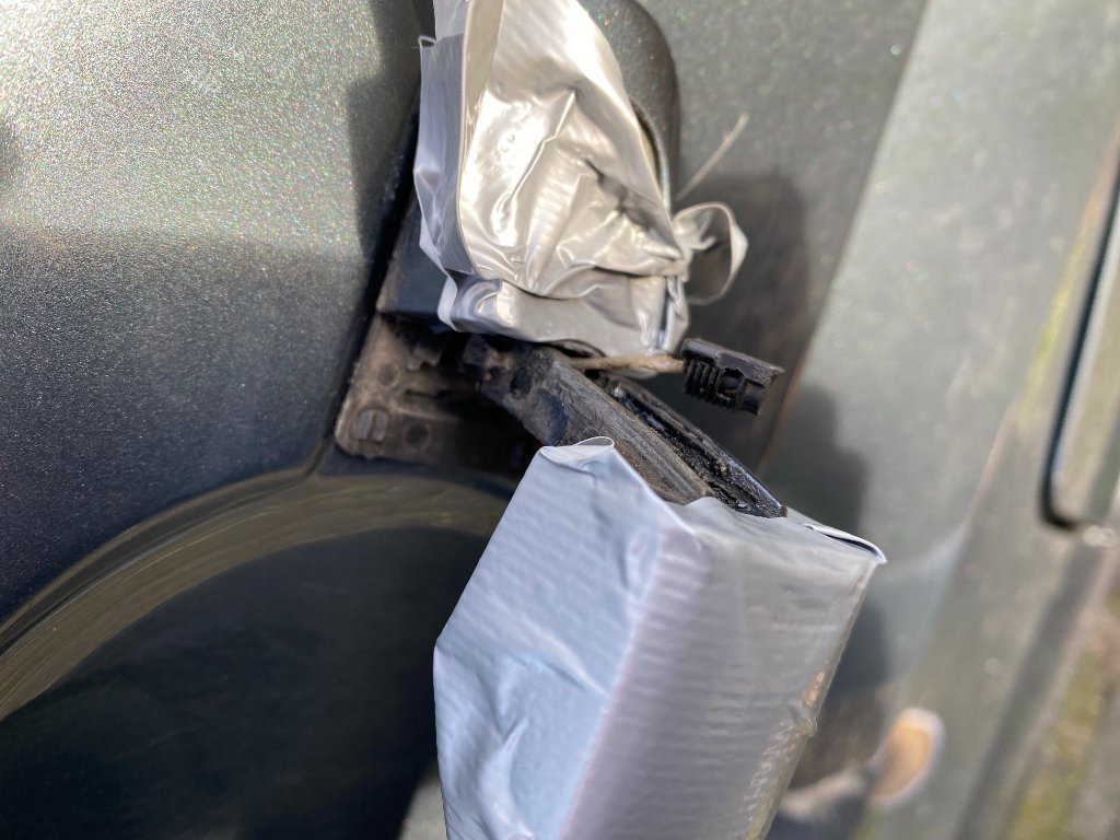 Tot het nieuwe slot binnen is, natuurlijk eerst alles terug geplaatst. Deur dicht gegooid en centrale vergrendeling getest en deed het goed. Daarna de deur weer willen open doen van buitenaf, helaas, slot is ontgrendeld maar deur krijg ik niet meer open. Van binnenuit aan het stalen draadje trekken, gaat heen en weer, maar deur gaat niet open.