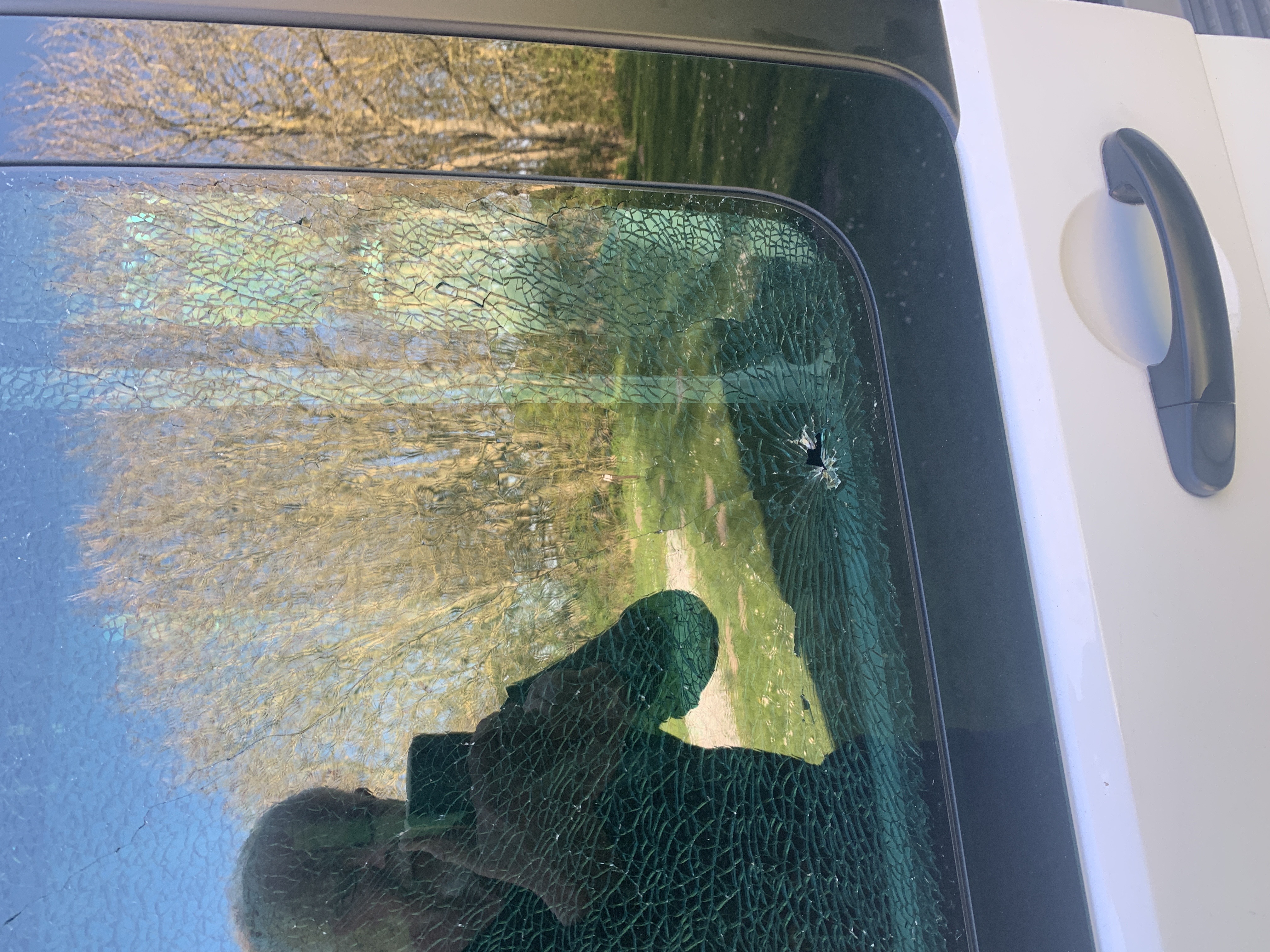 Ik heb schade de schuifruit in de rechter schuifdeur is kapot. Steenslag door maaien van gras op de camping.