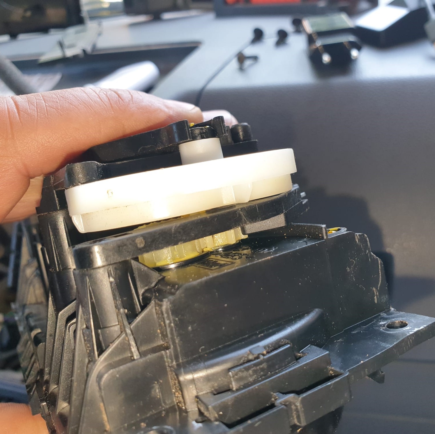 aanvulling, ik heb de veer uitgetrokken tot 32 mm terug. Wel de juiste lengte nu en minder veerdruk. Draaiknop en dashbord terug in elkaar en de knopbediening voelt nu goed en zuiver aan. Lucht komt ook weer in alle standen naar de juiste openingen. Als de veren volgende week binnen zijn bekijk ik welke dit doel kunnen dienen.