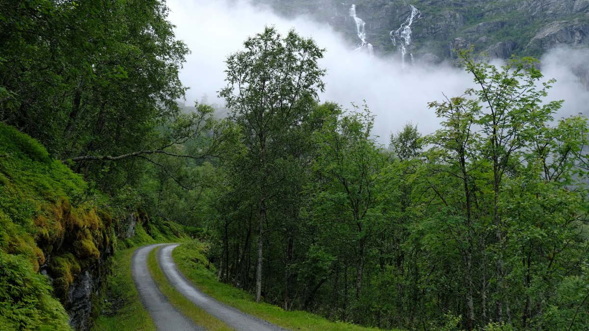 De volgende afslag op het menu is naar rechts, de 25km lange weg naar de Nørstedalseter. Meteen heb je door dat dit géén wegje voor toeristen is. Het is maar één vak breed, er zijn nauwelijks passeerpunten, en na enkele kms gaat het asfalt over in onverhard.