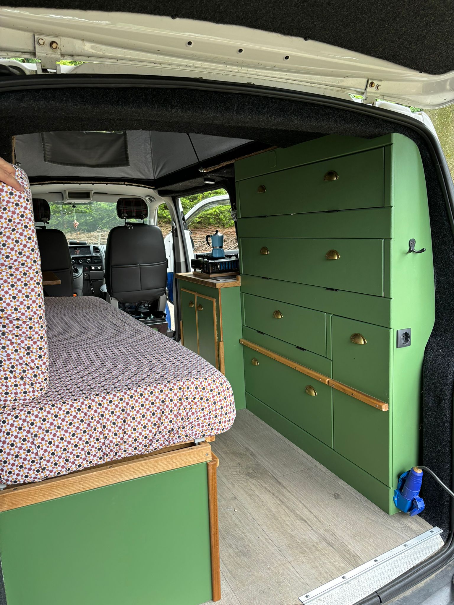 We wilden eerst een T4 kopen, maar veel bussen bekeken en veelal waren dit grote roesthokken. Daarom toch voor een nieuwere bus gegaan met een hogere KM stand.
