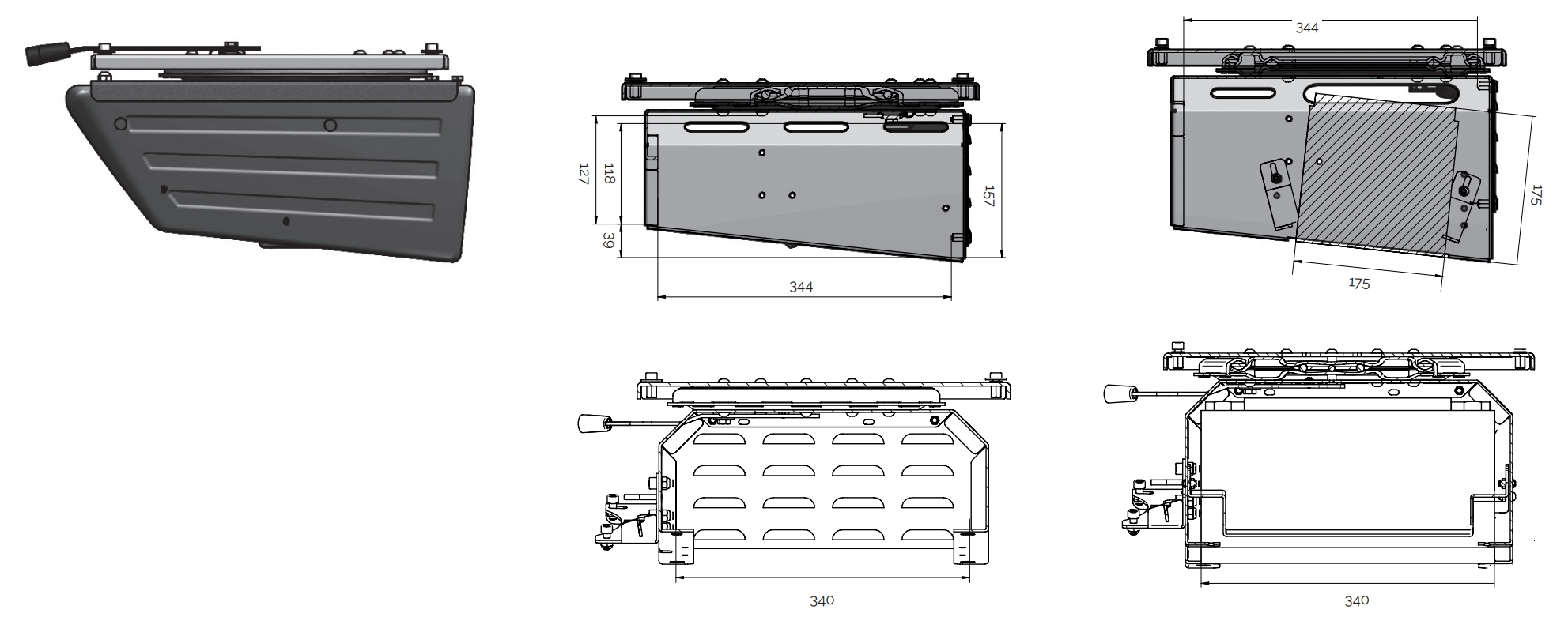 de standaard consoles met ingelaste accubodemplaat. Handrembevestiging losgemaakt en lager terug aangelast ivm draaiplateau.