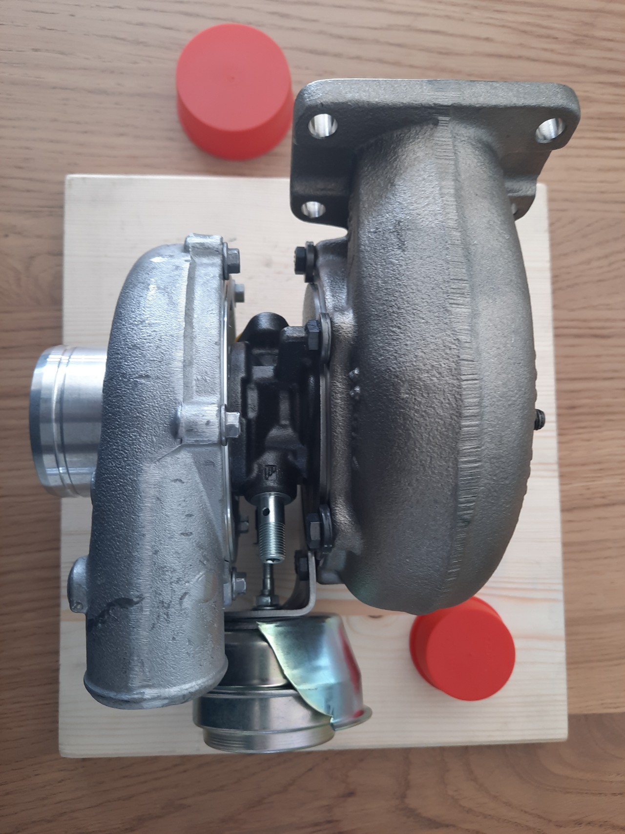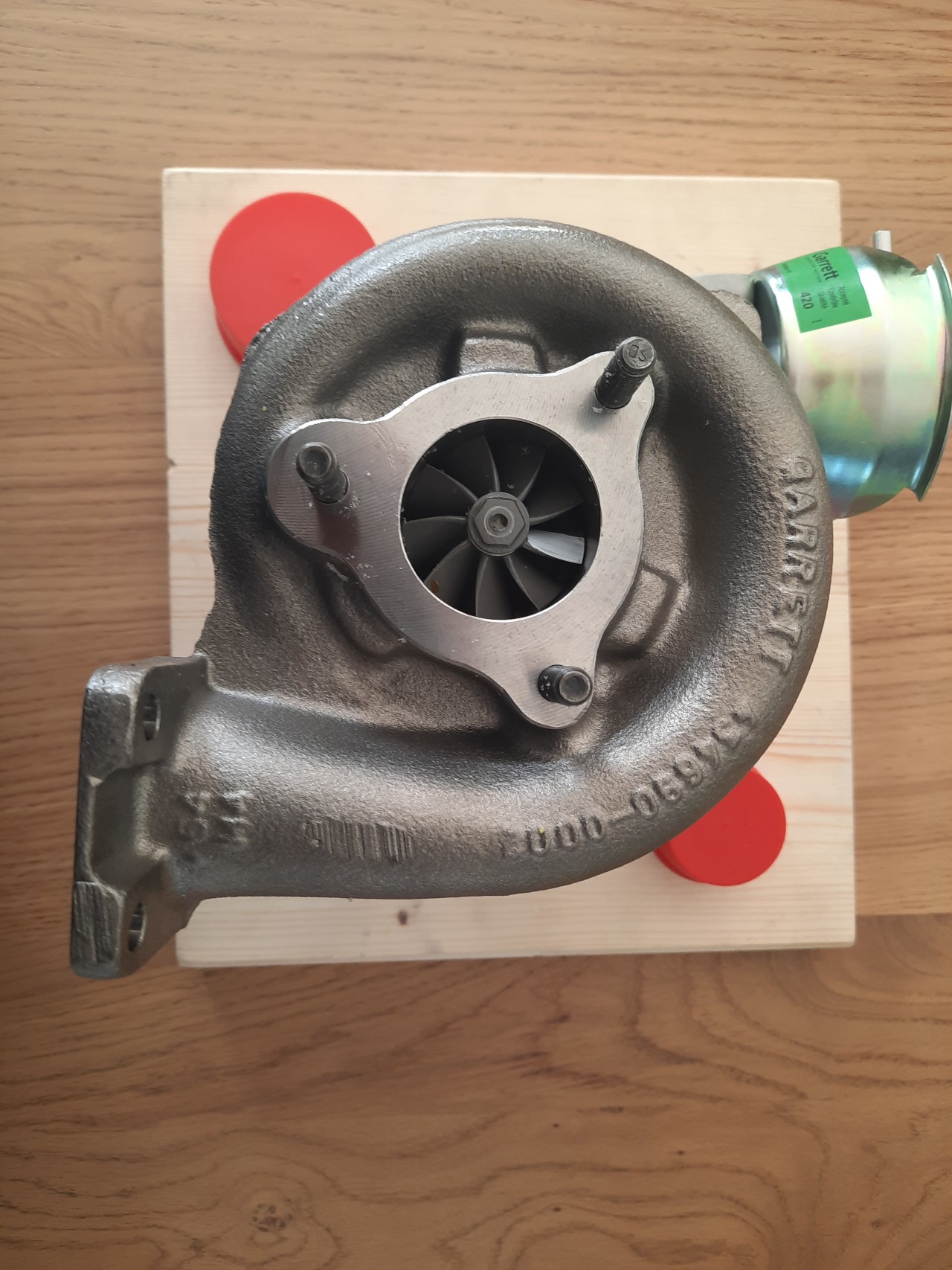 Inmiddels is de nieuw binnen, zie bijgaande foto's: Het betreft een nieuwe GARRETT turbolader, volgende week gaan we deze inbouwen....