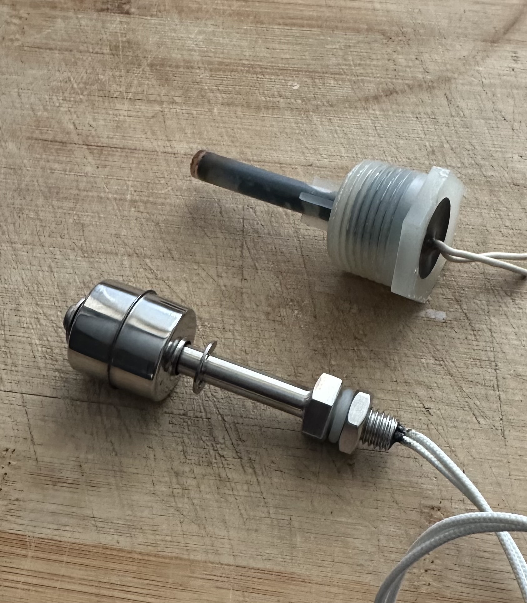 Nog even isoleren met tape of krimpkous en je vlotter kan weer in de tank geschroefd worden en aangesloten met de oude stekker op je systeem.