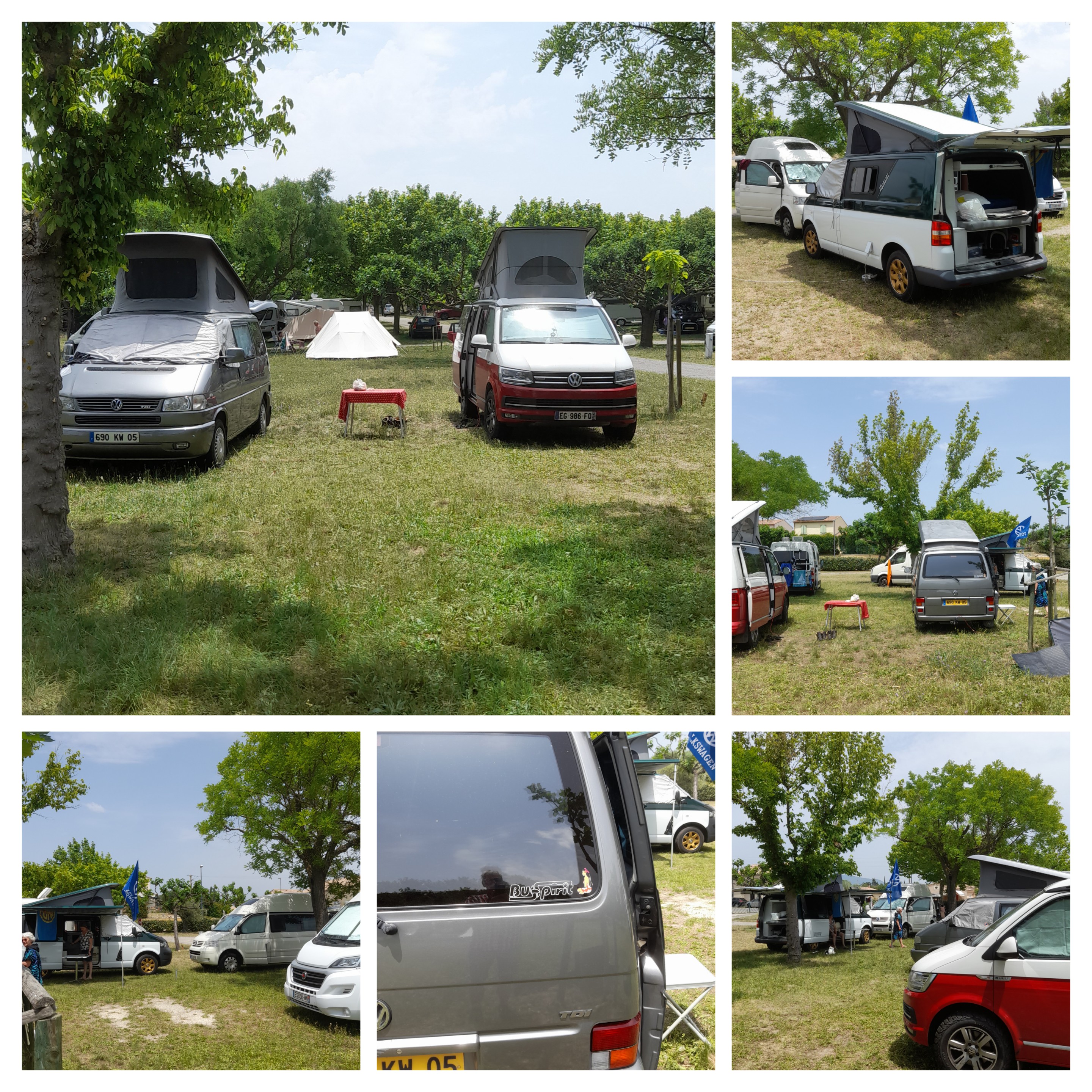Er stonden 4 busjes in ons blikveld die om nader ondezoek vroegen, het zijn leden van Busspirit.org in Frankrijk, een VW bus forum, maar in bredere vorm, dus ook eigenaren van LT's, Crafters en Caddy's kunnen bij hun terecht