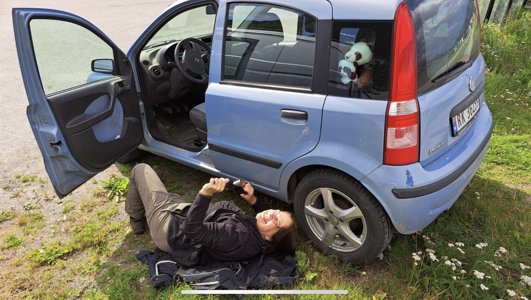 Deze wil ik onze volgers hier niet onthouden! Terwijl ik deze trip maak, is Marga dus op bezoek bij haar zus in Noorwegen. Maken ze een tour in haar Panda, valt onderweg de uitlaat eronderuit! In noord-Noord-Noorwegen, zaterdagmiddag laat… Dan ben je voor pechhulp het haasje.