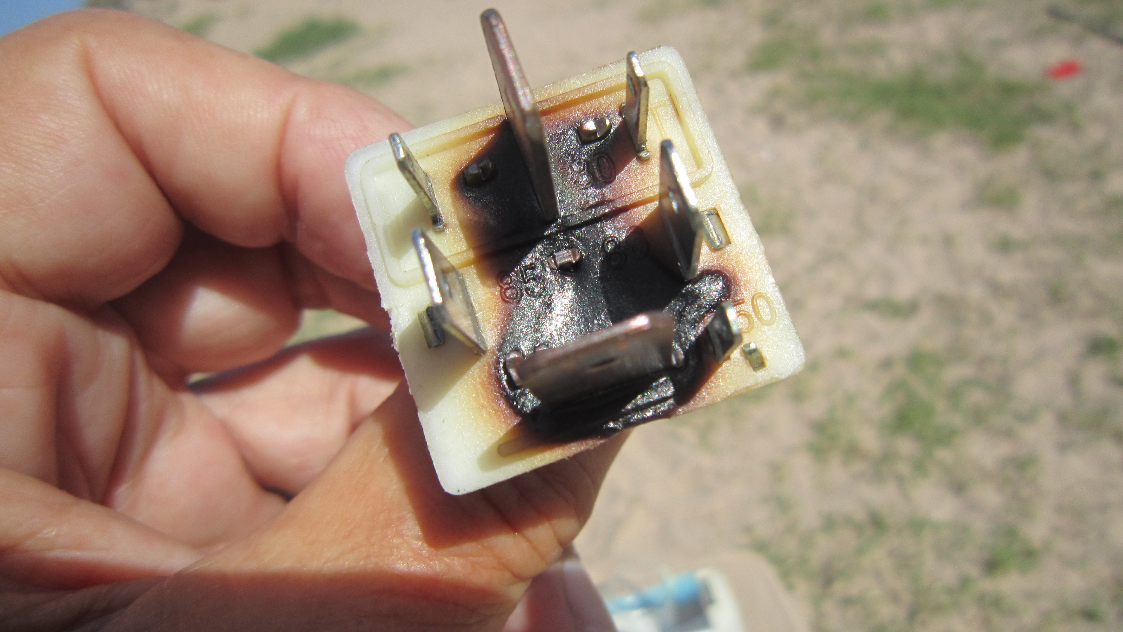 Wat blijkt? Het oude relais schakelt na 20sec af waarbij het bosch relais nog geschakeld blijft na 2min gestart te hebben... en waardoor de kabels heet worden.