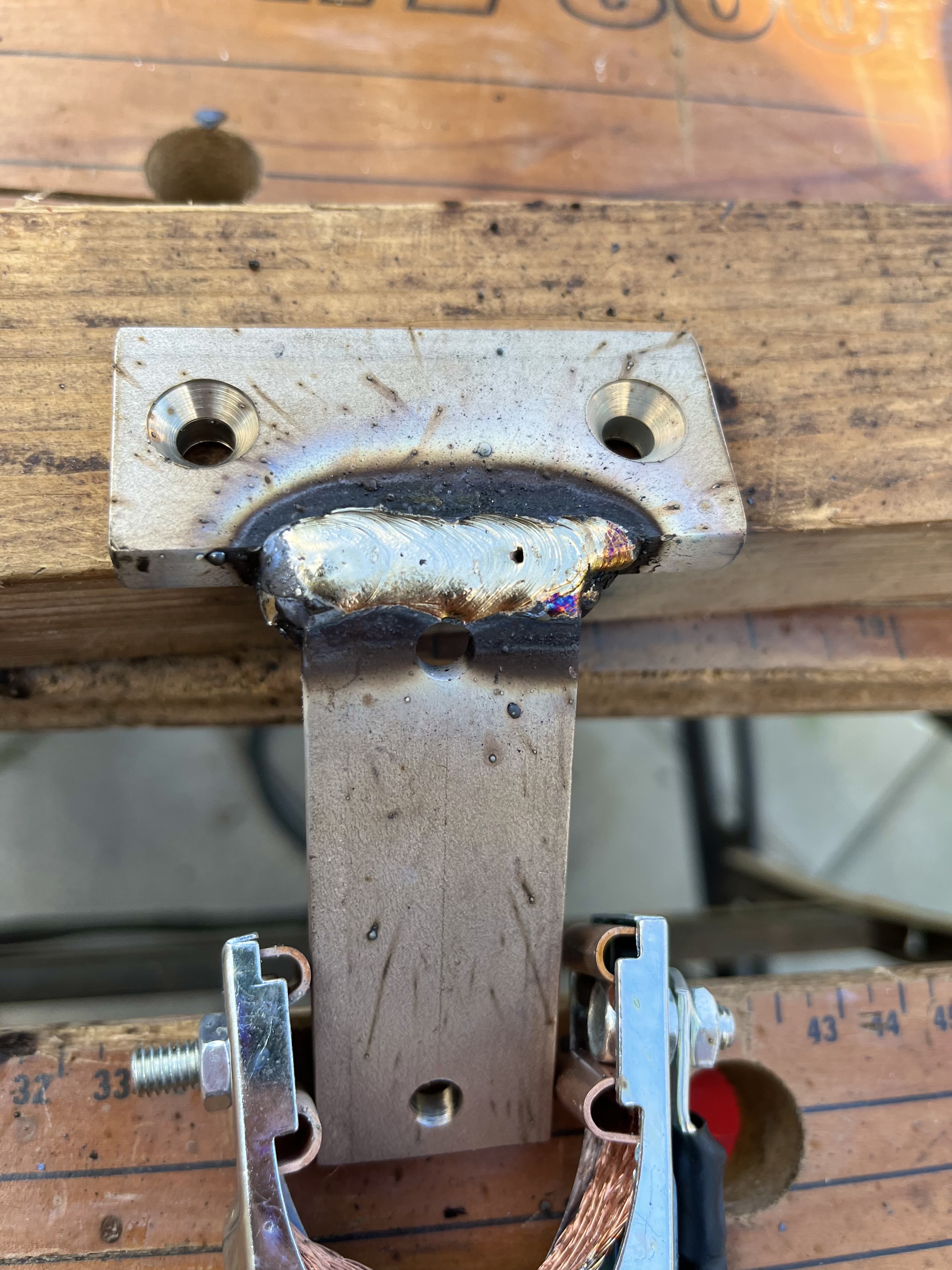 Een stripje RVS besteld (8 x 30 mm), alles secuur uitmeten, gaten boren en verzinken en dan onder de juiste hoek aan elkaar lassen.
