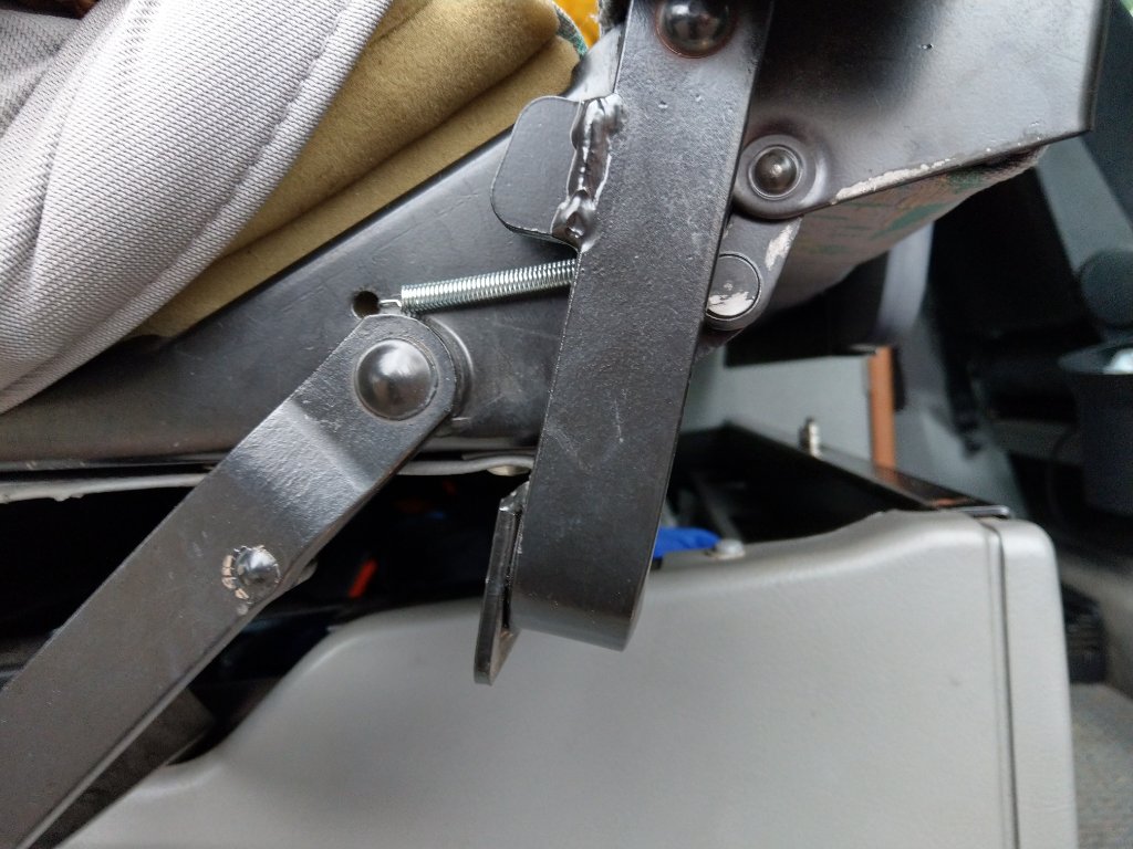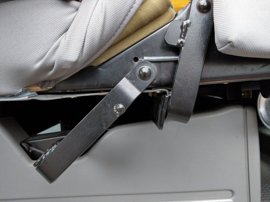 Als het om het veertje aan de kant van de kastjes gaat dan is het waarschijnlijk wel nodig om de bank eruit te halen. Dat doe je door hem helemaal naar voren te trekken zodat de voetjes bij een uitsparing in de rails komen. Op dat punt kan je de bank omhoog tillen en een stukje opzij zetten zodat je ruimte krijgt tussen bank en kastjes. Wel met z'n tweeën doen want die bank is behoorlijk zwaar.Zomer schreef: 14 sep 2025, 15:41 Dank voor je reactie! Maar doe ik dat dan van binnenuit? Dat driehoekje zit toch aan de kant van de kastjes? Daar kan ik niet bij? Ik heb een T4 event 2002.