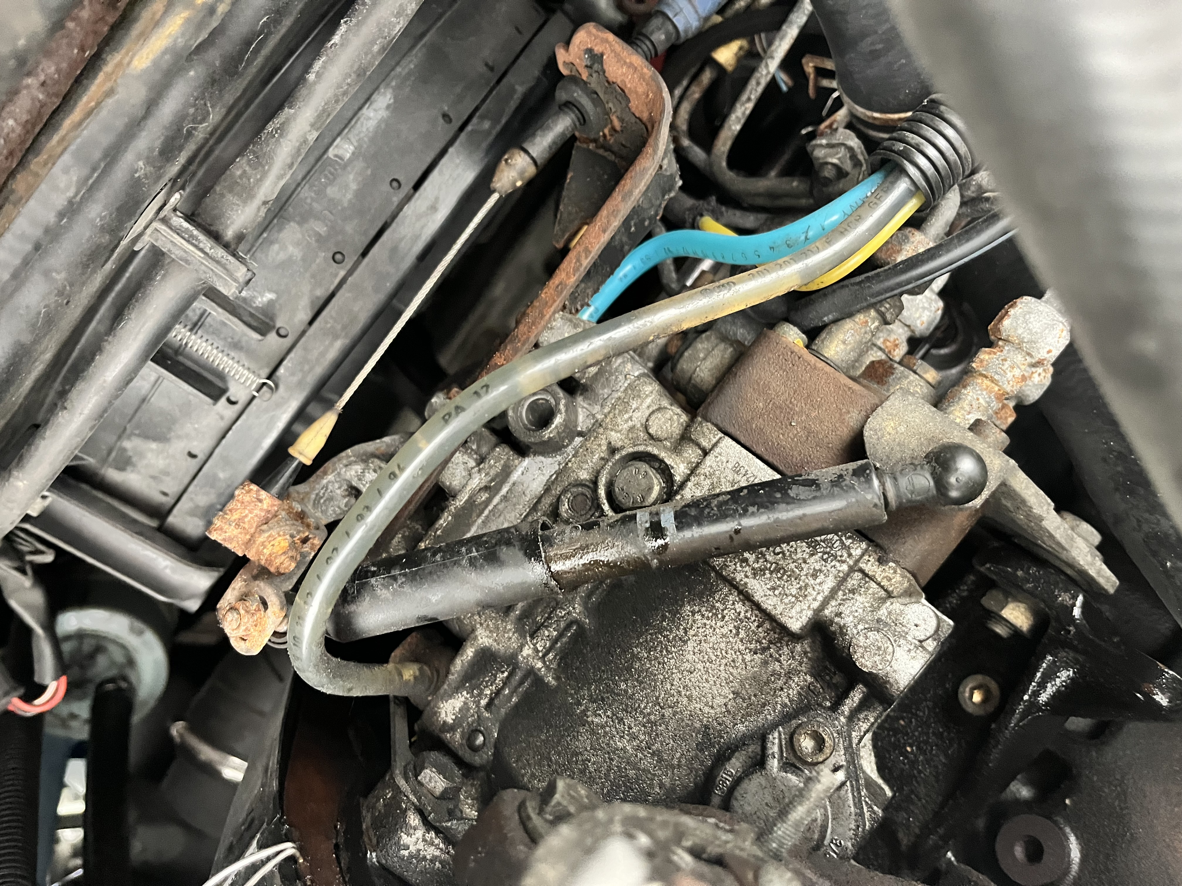 Ik heb de beplating onder m’n motor (1.9D) gedemonteerd want ik heb een andere startmotor nodig.