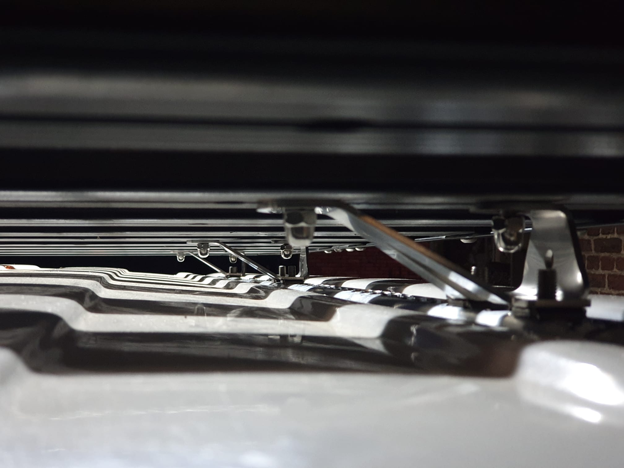 Rails wijkt ook een beetje ten opzichte van elkaar, ca. 1 cm over de lengte van 150cm. De sporen/ribbels in het hefdak lopen dus niet 100% parallel maar wel links/rechts goed op maat ten opzichte van de zijkant bus.
