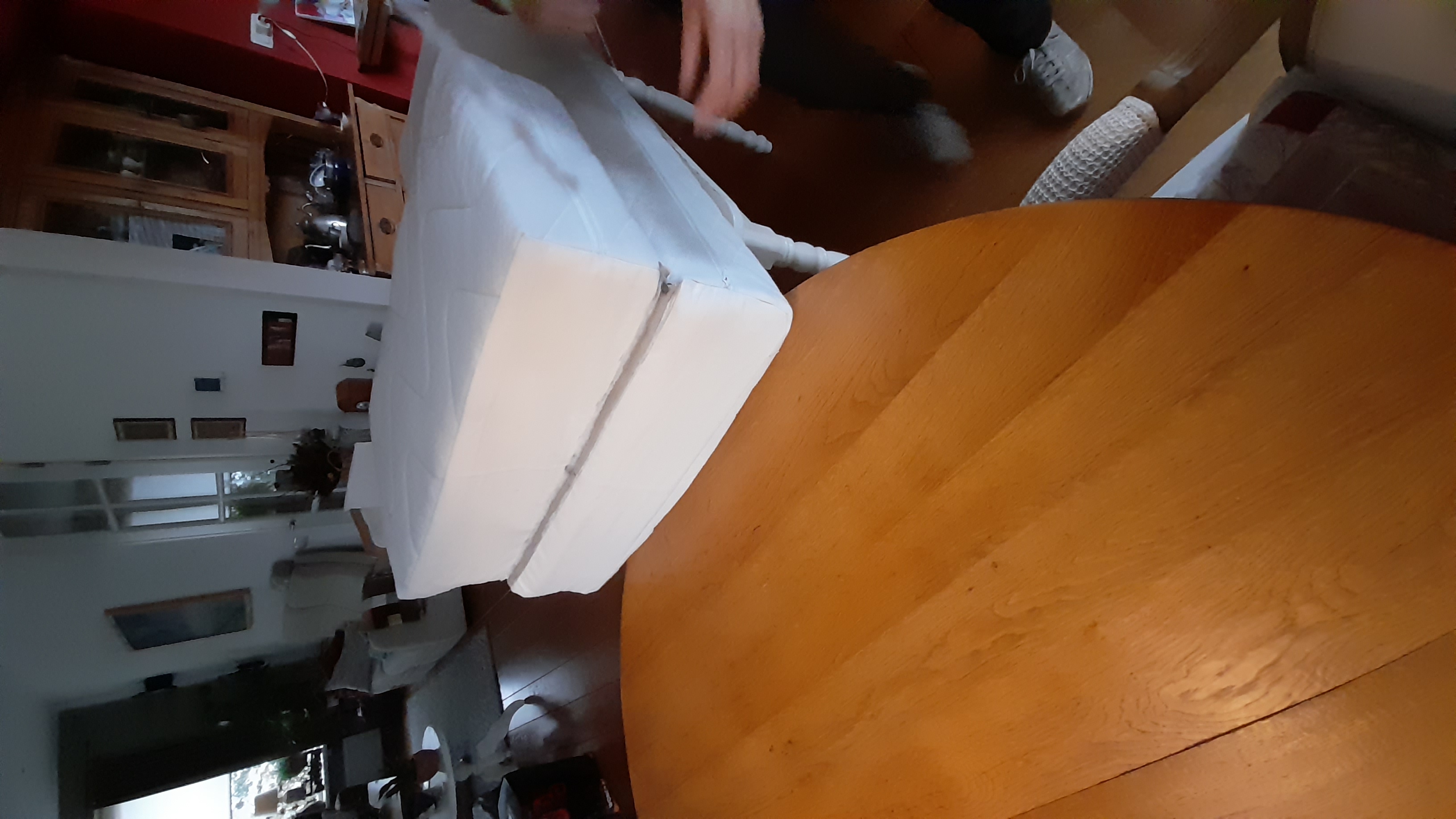 Voor de nacht klappen we het kortematrasdeel weer naar beneden en is het weer een volwaardig matras. En zo blijf je verbeteringen aanbrengen.