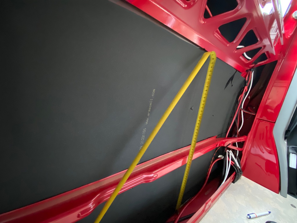 Met passen en meten wordt de meeste tijd versleten. Voor het paneel staat ook nog een keukentje en daar moet de sub grill wel naast komen. En de box botst op een carrosserie balkje. Dan maar een tijd vretende uitsparing maken.