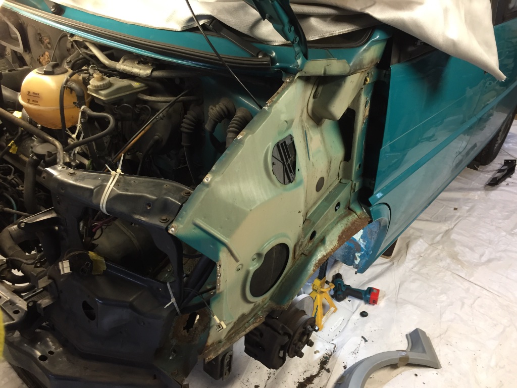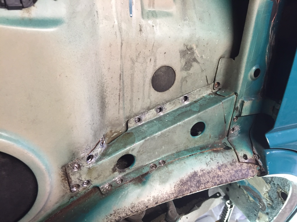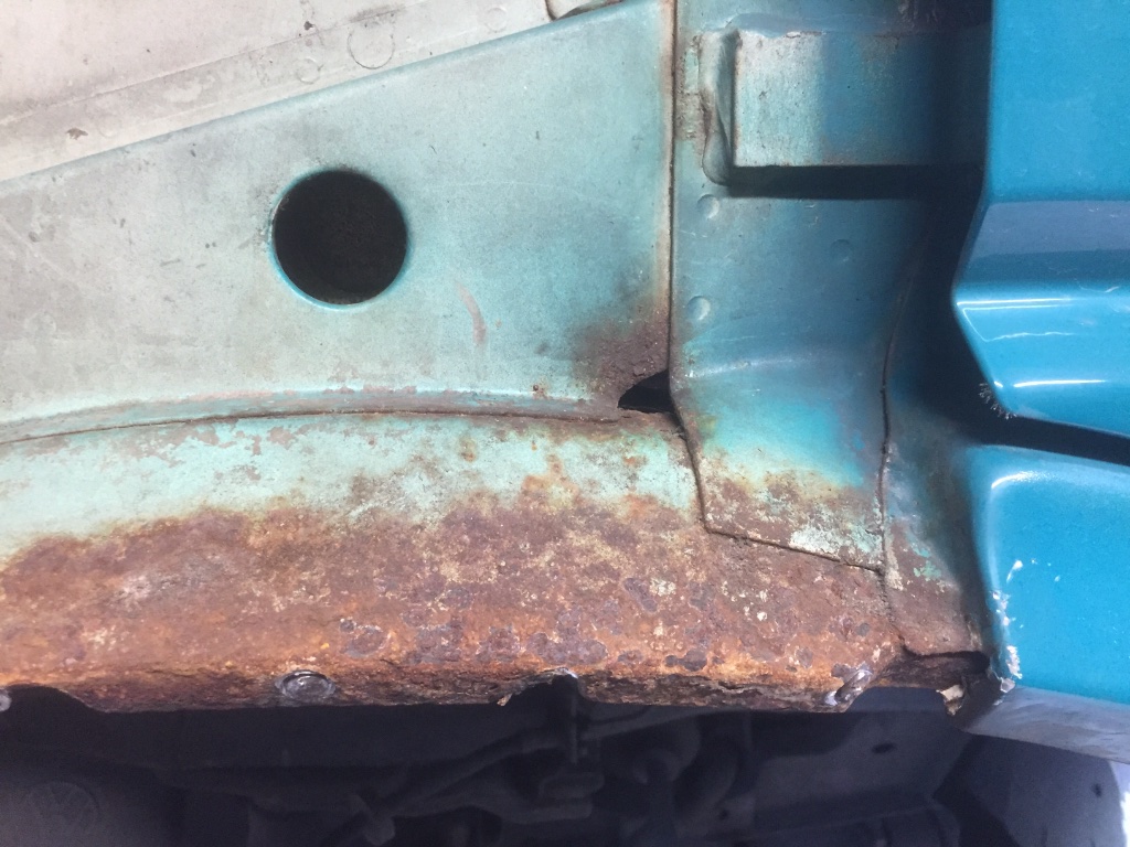 ... Bovenstaand is ook te zien dat de knappe koppen bij VW een rommeltje hebben gemaakt van het plaatwerk. Veel laagjes half over elkaar heen. Hier komt vocht bij en iedere overlap is een potentiële roesthaard.