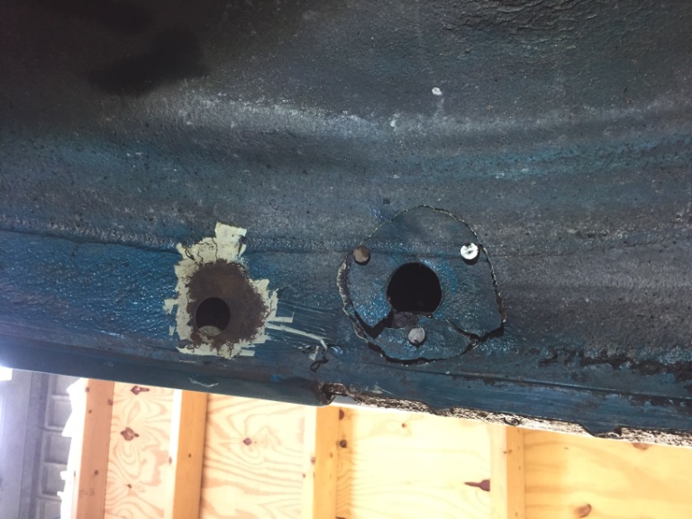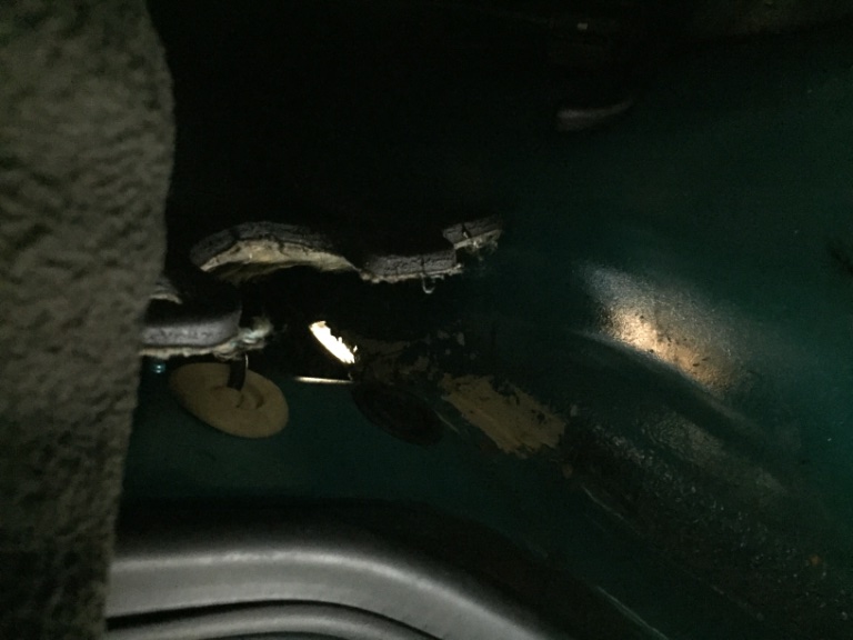 Bij het weghalen van de accusteun kwamen nog meer gaten in het vloertje tevoorschijn.