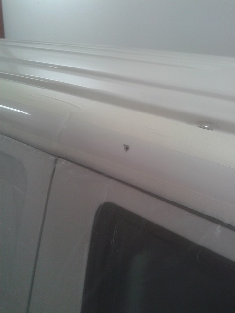 Vervolgens de lijm aanbrengen, ik kwam er toen achter dat mijn kitspuit van het type waardeloos was maar ik kon niet meer terug, de hele rails van een grote hoeveelheid zwarte lijm voorzien en toen naar de auto, achter weer in het touwtje en voor het eerste schroefje er in en zo naar achteren werken en op een gegeven moment het touwtje met een klaar liggende schaar doorgeknipt. De zwarte lijm kwam er bijna overal goed tussen vandaan en ik begon met het verwijderen van de overmatig aanwezige lijm met een hoek van een verfroerstokje, daarna het aangebrachte schilders tape eraf, en toen begon de ellende. Om een lang verhaal kort te maken, 3 uur, 4 keukenrollen, een halve liter thinner en hoeveelheid dode hersencellen verder was alles weer schoon en zat de rails er naar tevredenheid op. Nog even wat stukjes bij gelijmd en weer schoonmaken.