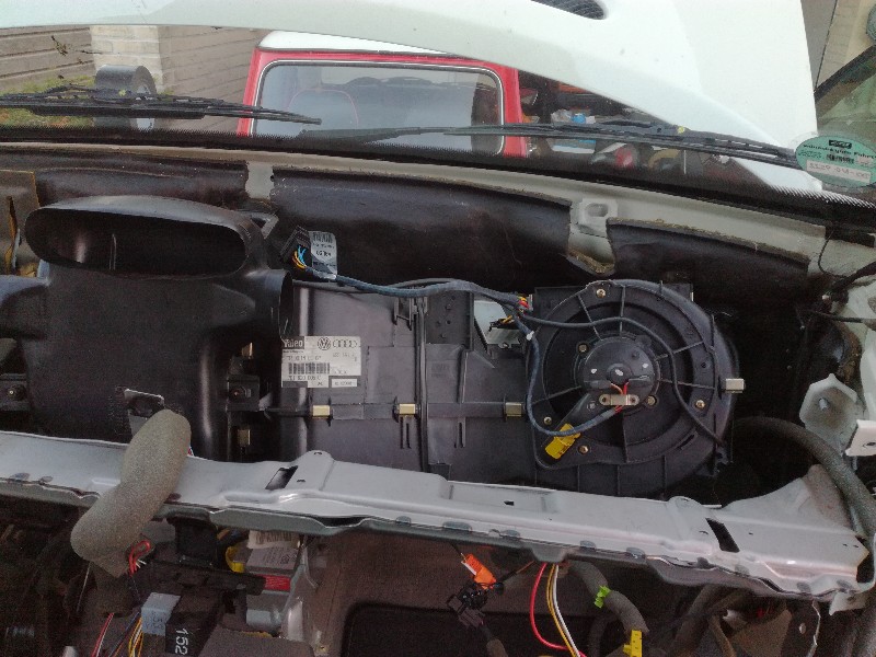 De kabelboom in de motorruimte was vandaag aan de beurt. Komt neer op het vervangen van de originele kabelboom door eentje uit een airco versie. Die laatste heeft wat meer aansluitingen (compressor, sensoren) en een andere aanstuurunit.