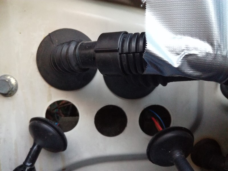 Even goed mikken zodat de aircoleidingen netjes door de doorvoer gaan.