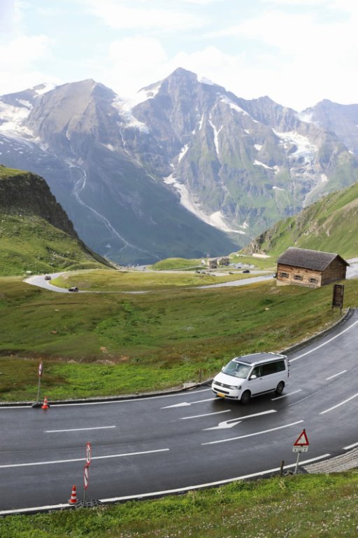 Op de Goldeck Alpenstrasse zag ik een Audi A3 achter ons rijden in de spiegels, en die heb ik even waar voor zijn geld gegeven hahaha! Omdat vrouw en kids het tempo nog binnen redelijke grenzen hielden liet ik de A3 na 6 hairpins maar even voorbij. Maar aan zijn gezicht te zien kon hij wel waarderen dat zo'n busje lekker vlot omhoog blafte