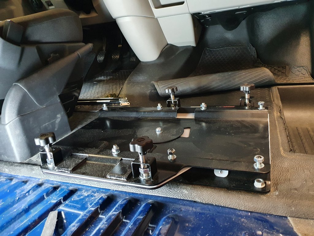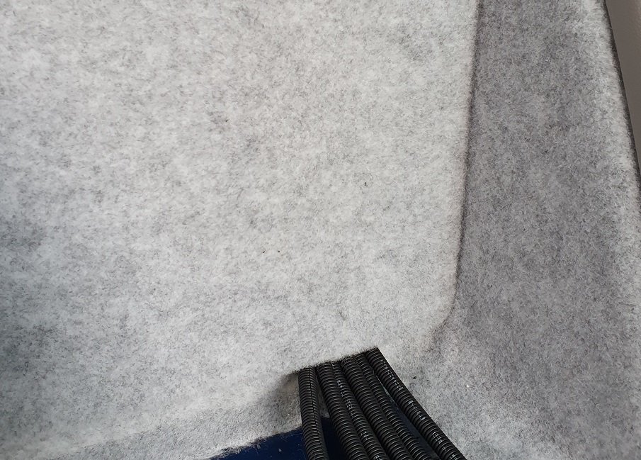 Onder de vloer komt er 20 mm Reimo Xtrem en de huidige gaten in de vloer van niet meer gebruikte en dus verwijderde bankbeugels en sjorogen,