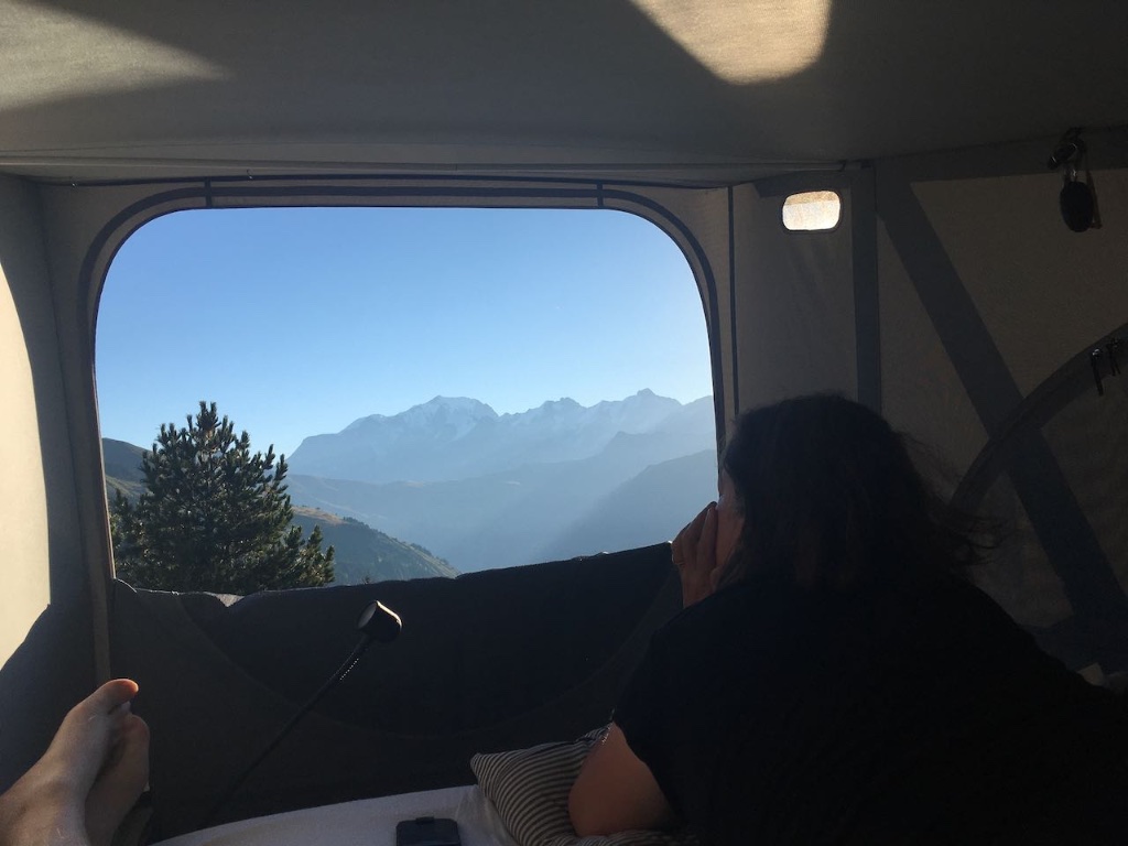 Mooi, hoor! Het is soms inderdaad heel apart. Wij hebben er regelmatig zo bij gelegen, met uitzicht (hier op de Mont Blanc) vanuit ons bed. Maar zo'n groot panoramagat als jullie nu hebben, daar is het onze kinderspel bij! :toppie