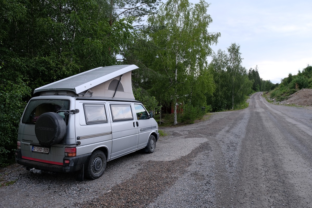 Ten Noorden van Matrand is een zandgroeve met bijhorende verwerkingsfabriek. Op de grindweg naar die zandgroeve vonden we een mooi parkeerplekje, ter hoogte van een zogenaamde badplaats, want er was ook een meertje.