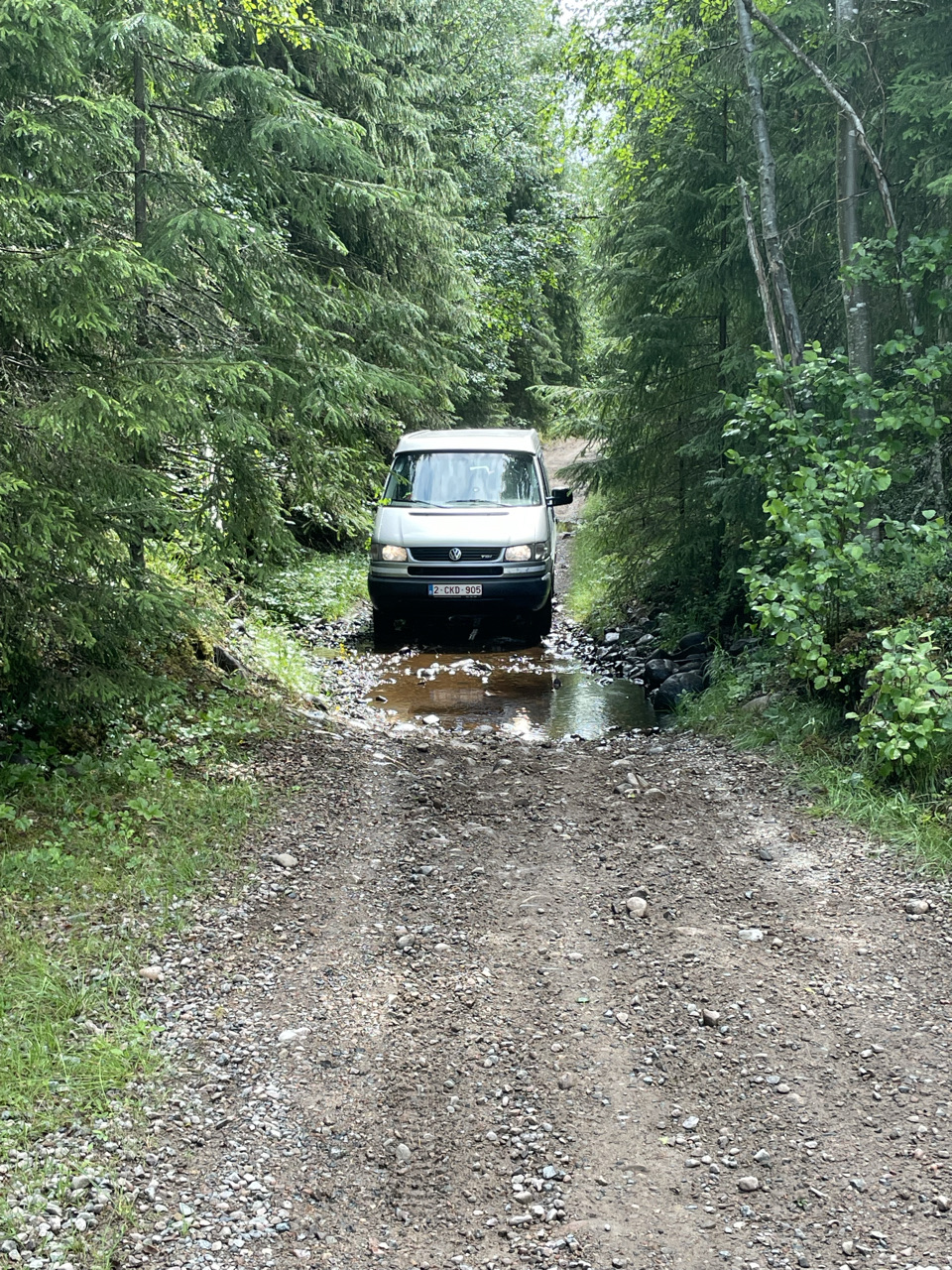 In Grue brandstof en koffie getankt. Nog een "vaffel" erbij, waarom niet? Boven Grue echter wordt de rivier Rotna noordwaarts gevolgd en de bosweg werd bij elke afslag smaller en slechter. Kilometerslang aan 10km/u, voorzichtig manoeuvrerend langs de grotere stenen, behoorlijk steil omhoog en omlaag. (Alles is natuurlijk relatief, met een jeep of motorfiets is dat daar poepsimpel). Was ook wat stressy, ik was er niet zo gerust op. Gingen we er door geraken of niet? Els haar opmerkingen waren ook nogal onrustwekkend eigenlijk ipv bemoedigend of rustgevend.
