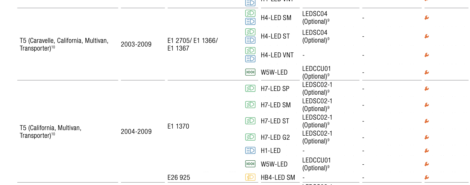 De H1 led staat voor de multivan T5 ook in de toelating voor Nederland in de lijst van Osram. Past dus 1 op 1.