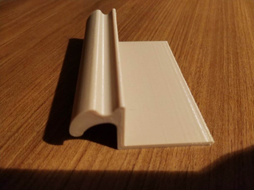 Vandaag mijn geprinte profiel ontvangen van Chris. Ziet er goed uit en past prima in de rail. Het materiaal voelt best stevig aan maar ik denk dat ik het nog wel verstevig door er een aluminium hoekprofiel in te lijmen. Ik zal te zijner tijd nog laten zien hoe ik het tafeltje gemaakt heb maar de komende weken kom ik daar helaas nog niet aan toe.