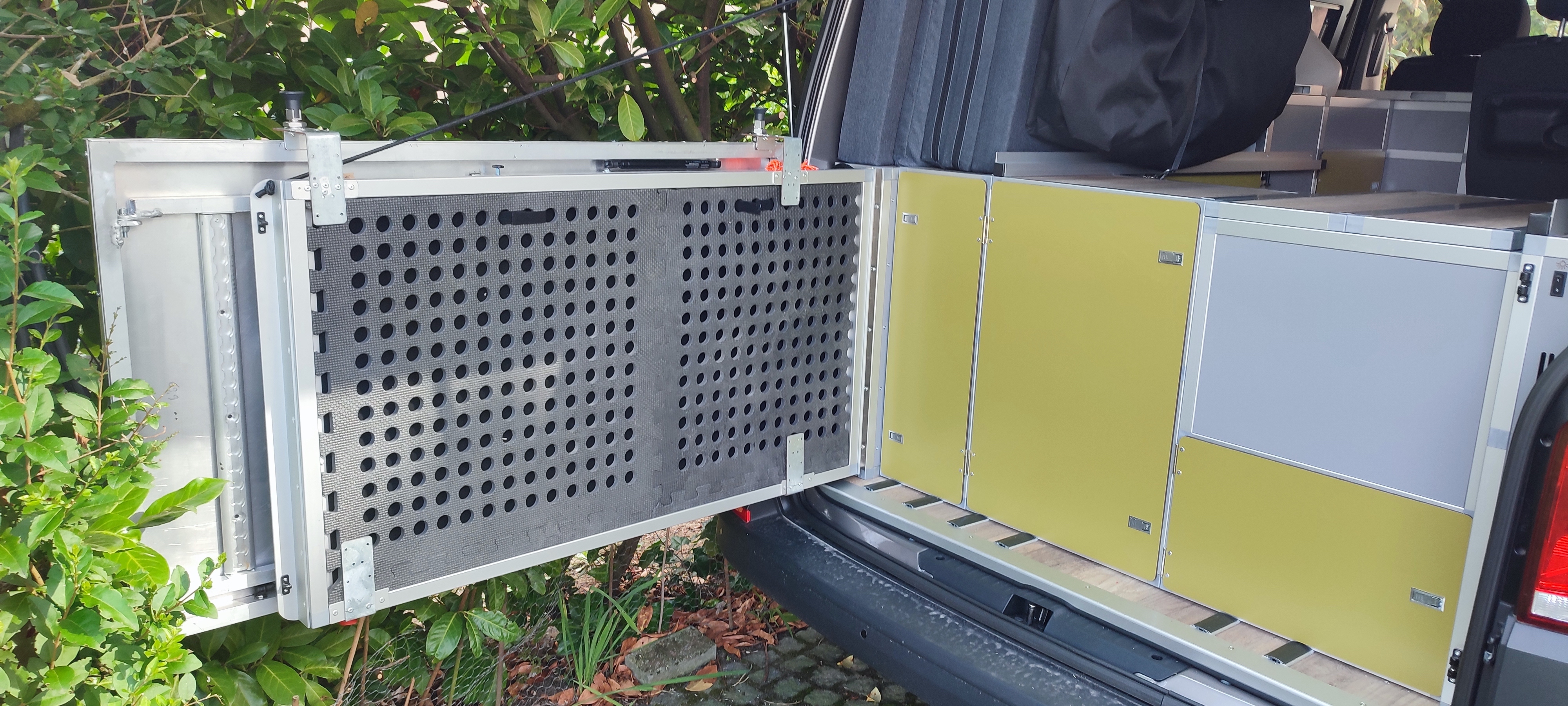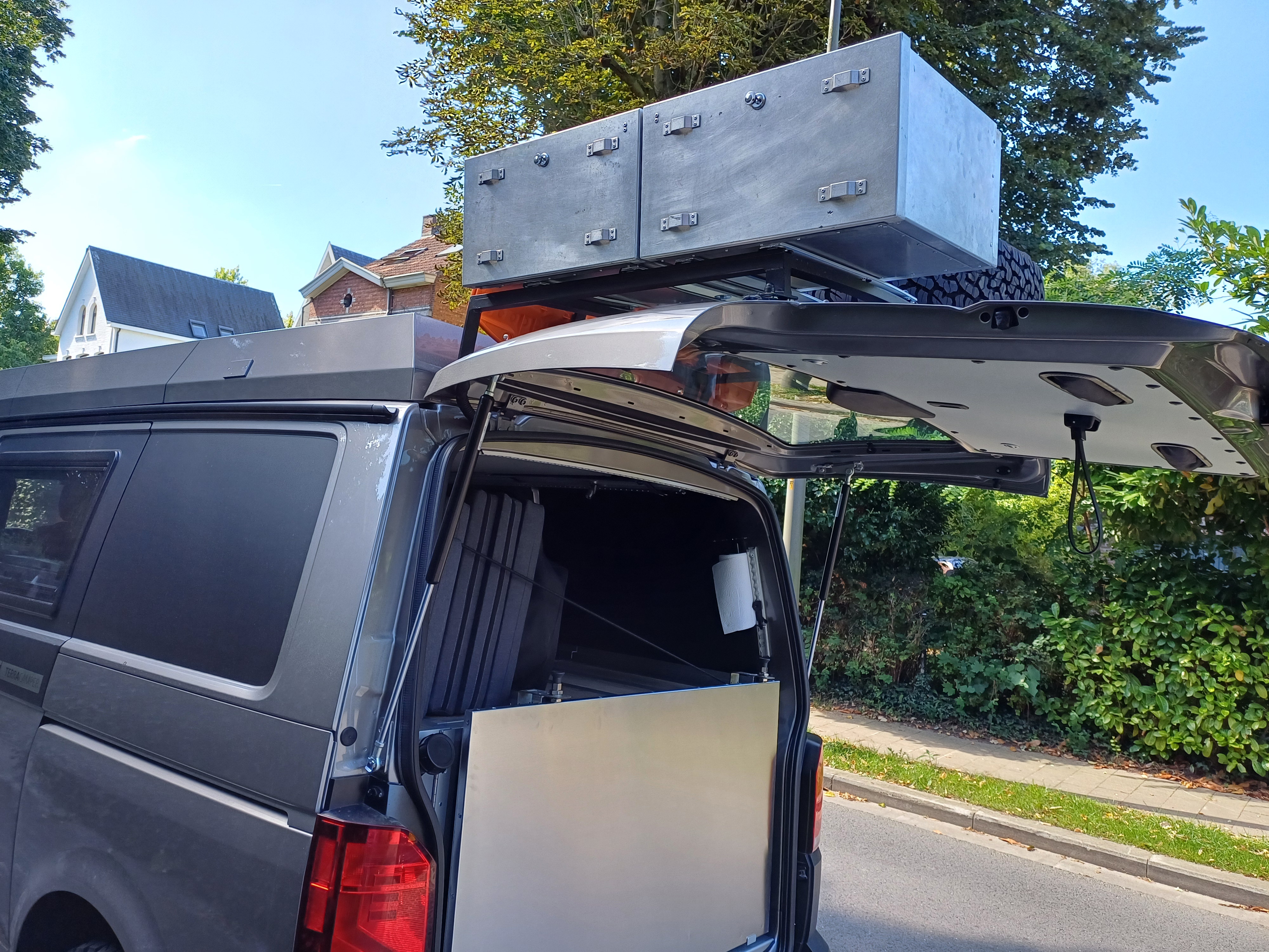 Wat mij bij staat van de terracamper zijn de flightcase achtige modules waar het interieur uit bestaat ,