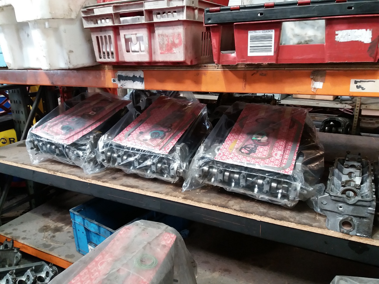 De oude motorblokken in de laadbak van mijn Amarok en snel een ritje naar de UK aangevat . Eens aangekomen bij het revisiebedrijf lagen onze nieuwe blokken al klaar , netjes ingepakt . S'avonds waren we terug thuis , met mooie goodies .