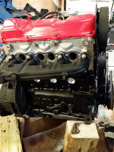 Verder werd het blok dus opgeboord , en voorzien van overmaat zuigers , krukas, lagers, oliepomp enz. nieuw . Een nieuwe cilinderkop , nokkenas , kleppen enz. Ik heb deze nieuwe motor dan verder opgebouwd met nieuwe waterpomp , nieuwe turbo , nieuwe starter , gereviseerde alternator , nieuwe oliekoeler , nieuwe verstuivers en nieuwe distributie . En meteen ook een nieuwe inspuitpomp gemonteerd.