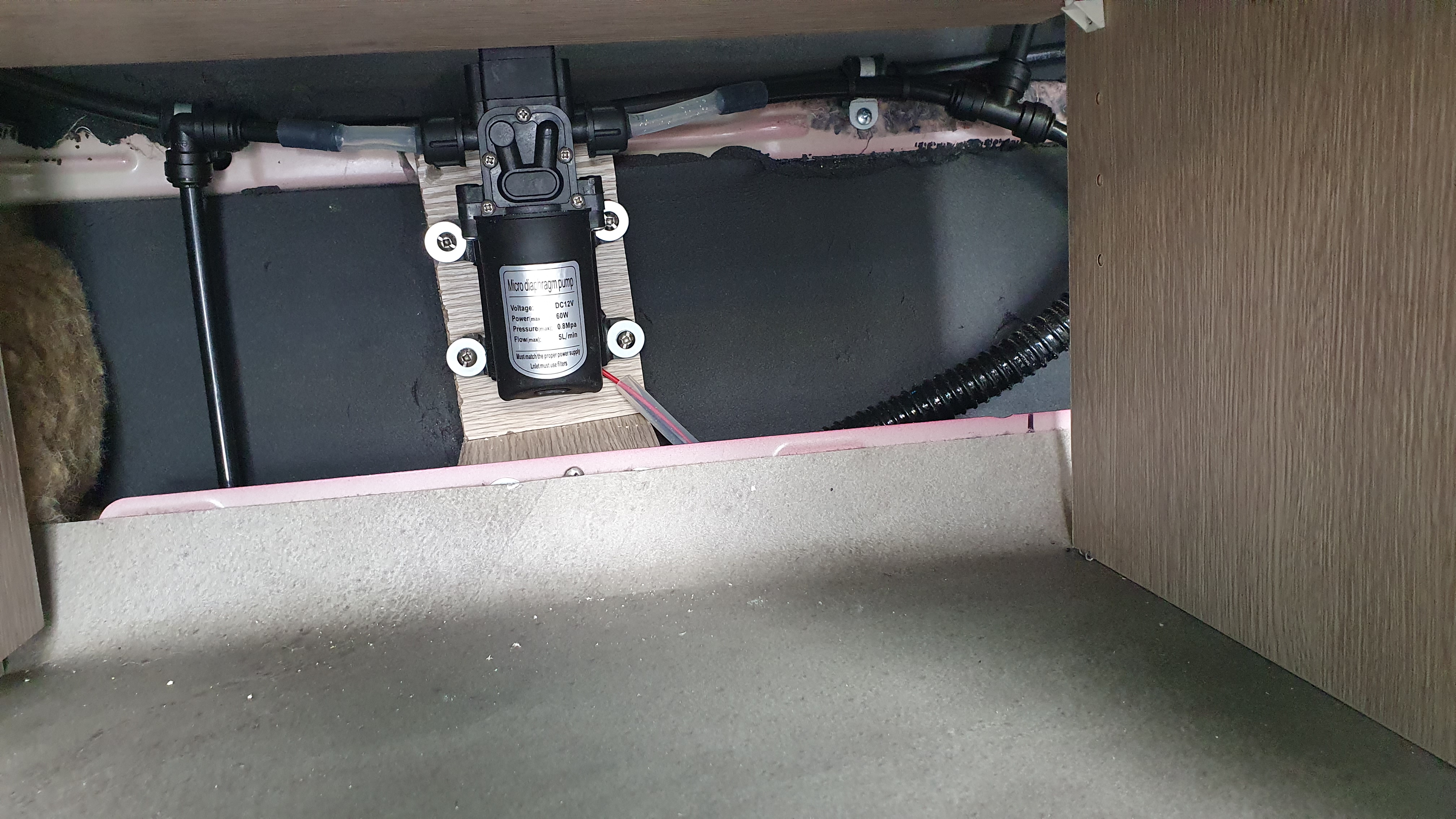 Dat zelfaanzuigende pompje gaat zowel de kraan als de douche van water voorzien