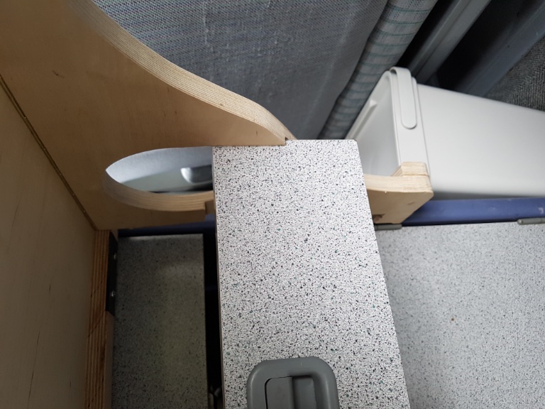 Ik vraag me alleen af waarom je het laatje laat blokkeren door de tafelsteun als het nog maar half open staat. Wat is hier het idee achter?