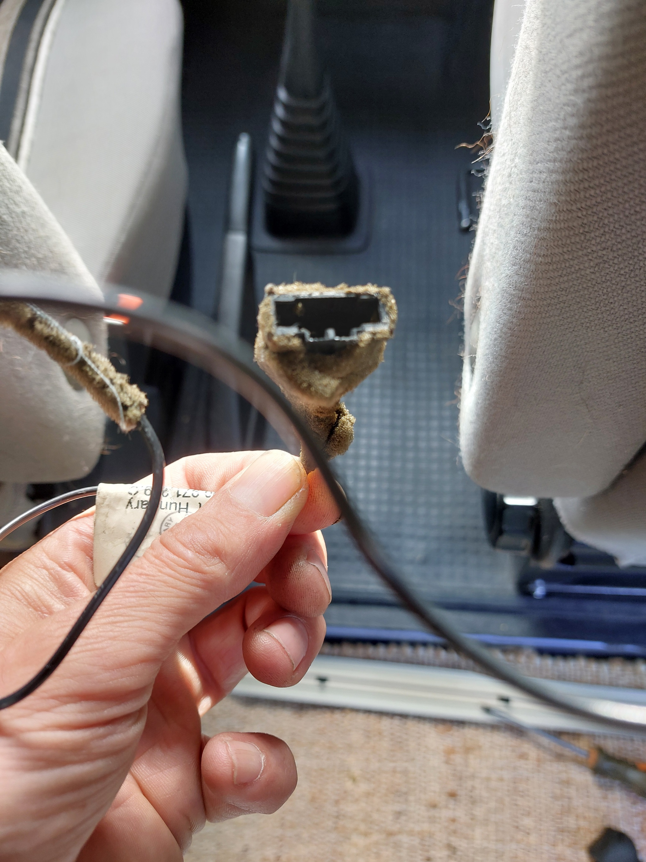 Maar nog niet op de schuifdeur , na wat speurwerk blijkt dat de schuifdeur schakelaar niet was aangesloten. Dit is de enigste contrastekker ( rood via contact en bruin/wit is geschakelde massa ) die ik kon vinden . Even getest en het werkt , maar waar is die + draad dan voor ( instapverlichting ???)