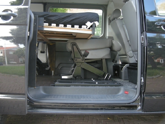 Na enig zoeken en eens een proefritje, stond daar ineens de advertentie voor een mooie T5 uit 2004, DC, kombi, 130 pk, gechiptuned, 70.000 op de teller, zwart, airco, stoelverwarming, centrale deurvergrendeling, zwaardere dynamo, cruisecontrol, daglicht en nog wat dingetjes. Ook nog eens bij een garage in de buurt. Hij was van de eigenaar zelf. Er was heel goed op gepast en zag er puntgaaf uit. Een alternatief stond helemaal aan de ander kant van het land in Limburg. Kortom de koop ging door. Achteraf kan ik alleen maar zeggen, dat ik ontzettend veel mazzel heb gehad. Ik had geen idee hoeveel verschillende uitvoeringen er zijn en deze was gewoon erg geschikt voor de ombouw.