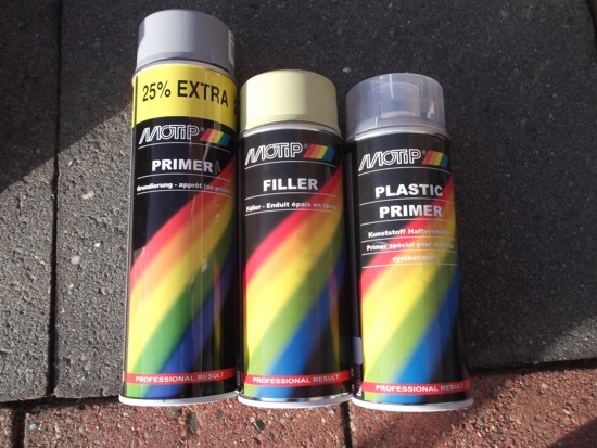 Gebruik motip primer en putty (plamuur in spuitbus)