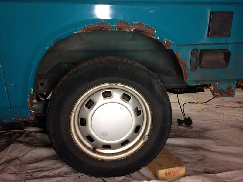 Nu -2016-2017- begonnen langs diezelfde wielranden weer aardige blazen te ontstaan: En als je met een schroevendraaier gaat schrapen wordt duidelijk dat het niet om slecht hechtende verf alleen gaat