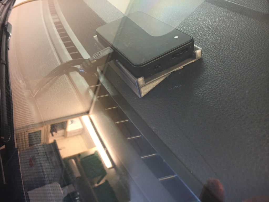 Ik heb me in deze bizarre tijden geprobeerd enigszins te bekwamen in Fusion 360 (een 3D tekenprogramma) waarin ik als eerste projectje een passend ‘bakje’ voor de HUD tekende wat diezelfde knik in de bodem heeft als het dashboard. Zo laat het doosje zich goed vastzetten met dubbelzijdig tape. Een familielid van me heeft mijn ontwerp op een 3D printer voor me uitgeprint.