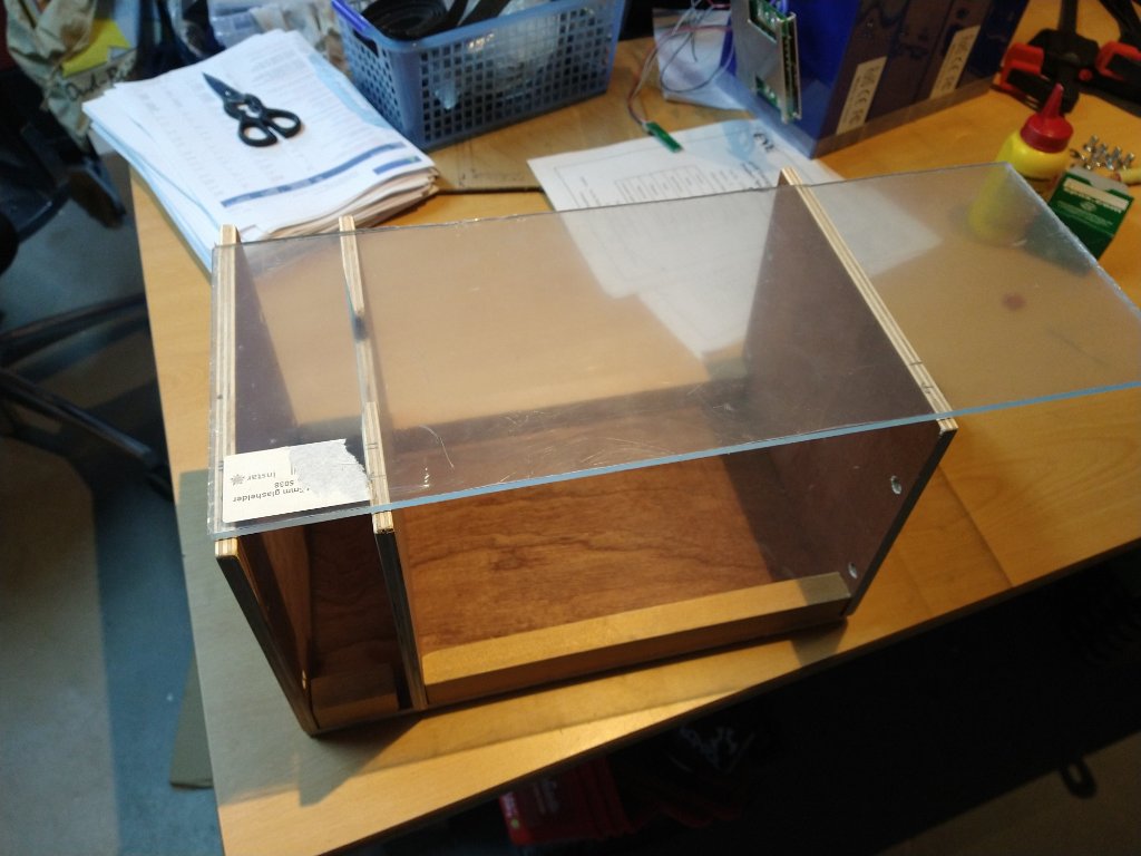 Helaas zit de accu ver weg onderin de kast gebouwd anders was een raampje wel een heel leuk idee.